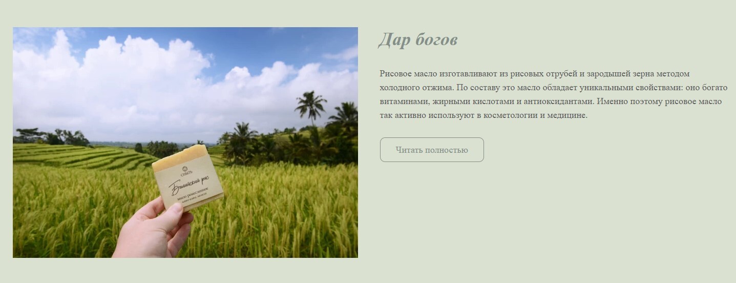 ремесленное мыло «Балийский рис» с рисовым маслом и нежной пенкой.