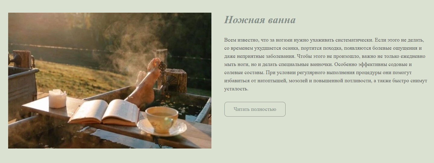 после чего ополосните ноги чистой водой. В завершение нанесите на ступни питательный крем и наденьте мягкие носки. Заварите травяной чай и еще немного отдохните!