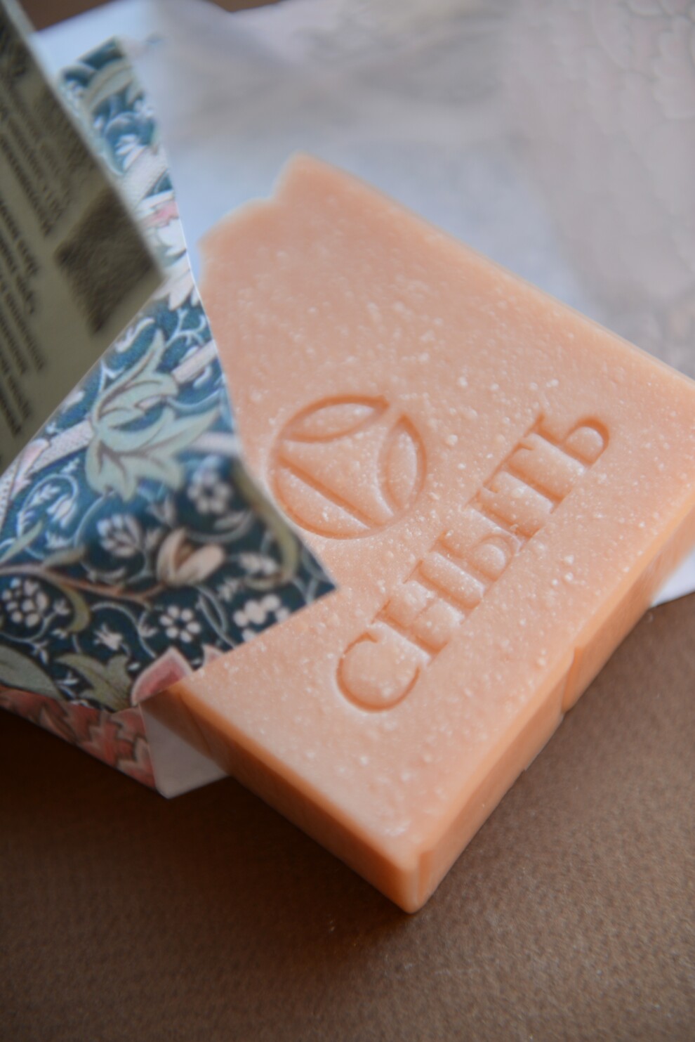 Состав (INCI): Rubia Tinctorum Root Water (отвар марены красильной), Sodium Olivate (натриевые соли жирных кислот оливкового масла), Sodium Palmate (натриевые соли жирных кислот пальмового масла), Sodium Cocoate (натриевые соли жирных кислот кокосового масла), Sodium Shea Butterate (натриевые соли жирных кислот масла ши), Glycerin (глицерин растительный), Sodium Grapeseedate (натриевые соли жирных кислот масла виноградной косточки), Kaolin (глина белая), Magnolia Biondii Flower Oil (эфирное масло магнолии), Paeonia Officinalis Flower Oil (эфирное масло пиона), Hydrolyzed Silk (гидролизованный шёлк), Linalool*, Geraniol*, Limonene*, Citronellol*, Benzyl Alcohol*, Citral*.