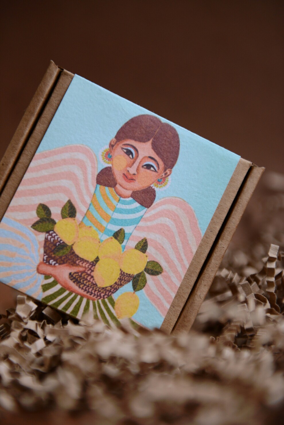 Подарочный набор-открытка с очаровательной красавицей порадует любого получателя.