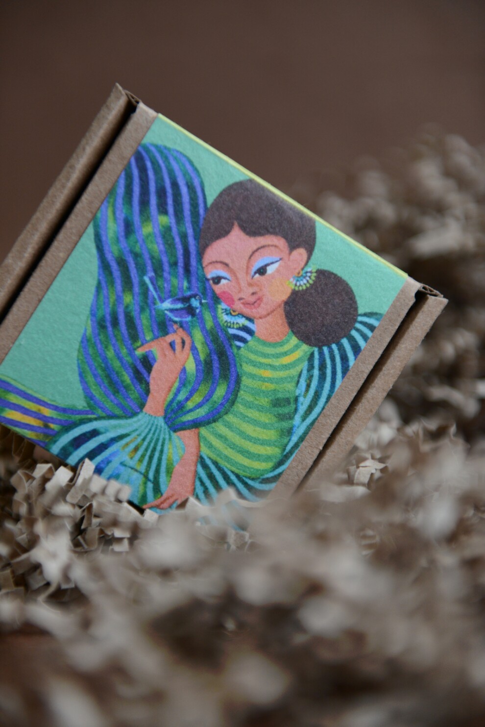 1. Коробка с откидной крышкой 7x7x4,5 см.
