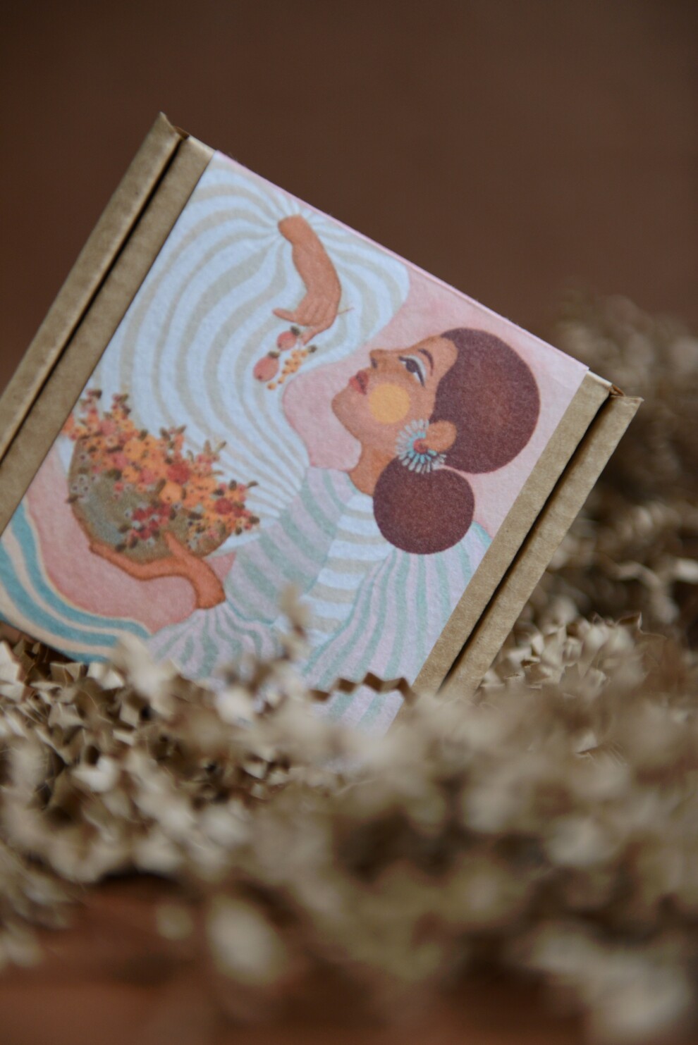 Подарочный набор-открытка с очаровательной красавицей порадует любого получателя.